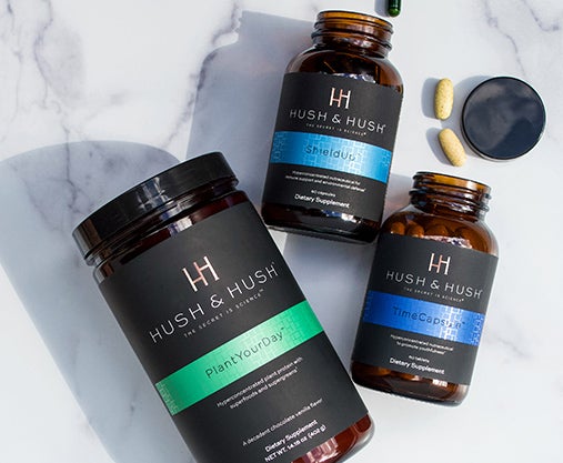 Deep-rooted in real regenerative science, Hush & Hush is the culmination of more than 15 years of cellular and nutritional research. The line is created by the founders of Image Skincare, Dr. Marc Ronert, a European Board Certified Plastic Surgeon and Janna Ronert, an esthetician by trade, who noticed a void in the market for supplements free of fillers, additives and synthetic ingredients.
