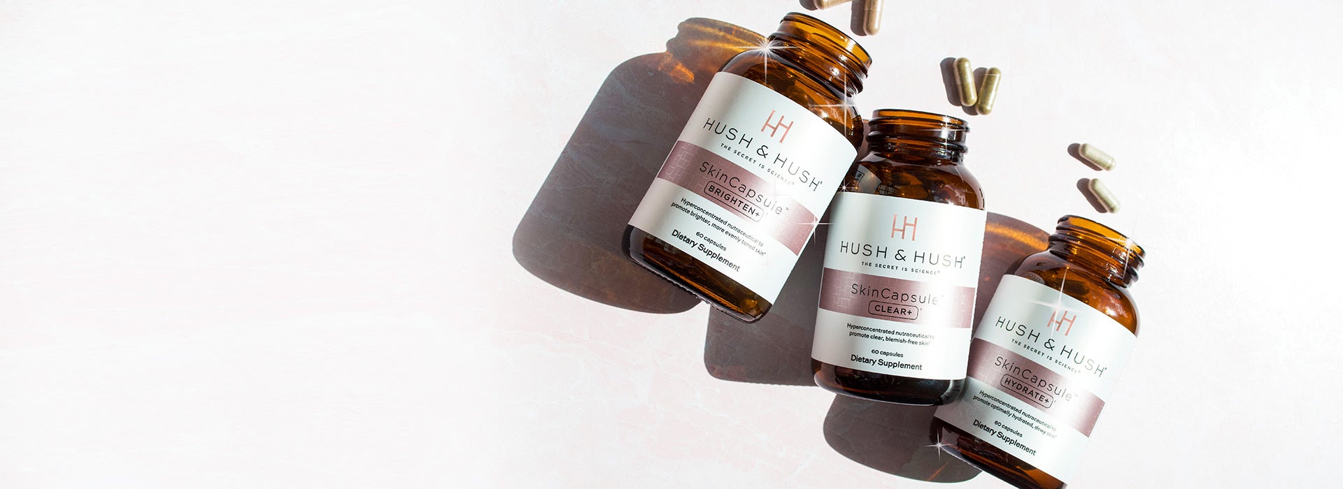 Hush & Hush is a problem-solution based line of luxury beauty supplements (each product targets a specific age- and/or beauty-related concern) to limit aging from an internal perspective.